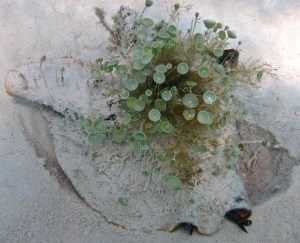 Conches are extremely abundant here. I’ve been trying to use them as markers for Nassau holes. When we find a YOY we sometimes have to wait awhile for the boat to come over. So in the interest of being able to move around a bit and not lose the hole, I place a conch that has distinguishing foliage on top of it (most of the Conchs have some sort of seaweed assemblage on their shells) near the hole. More than once my marker has moved away in my absence—luckily they don’t move too fast. The sea stars in the sandy lagoon move extremely fast, if you dive down you can watch their little suckers move them along rather rapidly—relatively speaking of course.