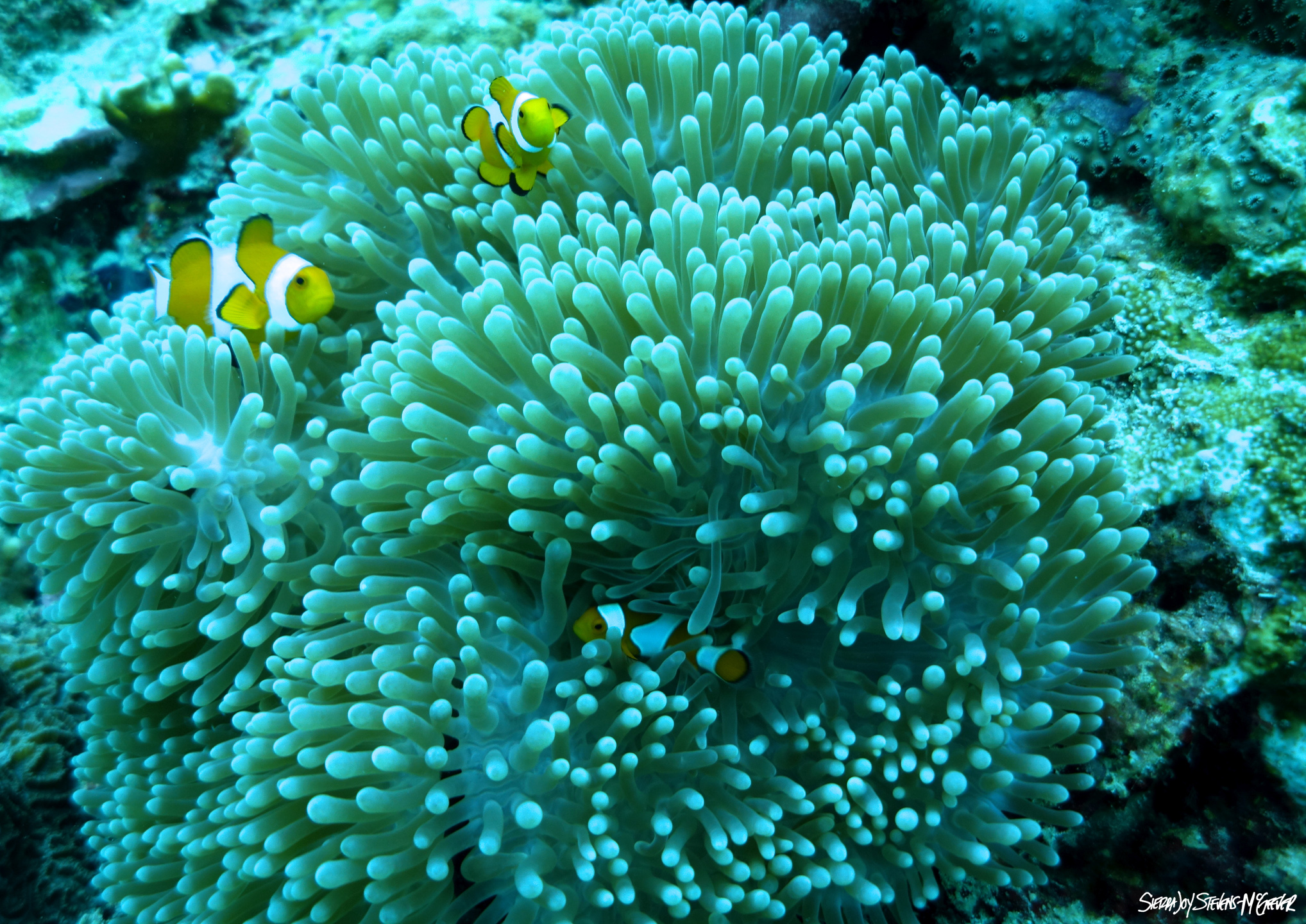 DSC01964A few highlights underwater were seeing my first wild pair of clown fish, adorably hiding in their anemone. A seahorse, some reef sharks, getting to snorkel off the boat with a manta ray and six or so pygmy sea horses barely half an inch tall perfectly camouflaged with the sea fan they clung to. See if you can spot them!