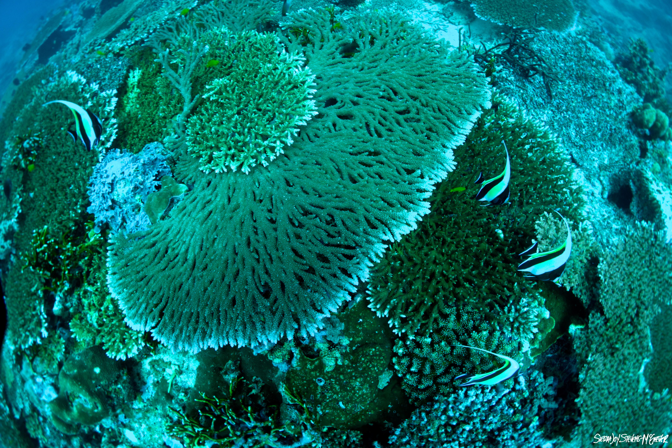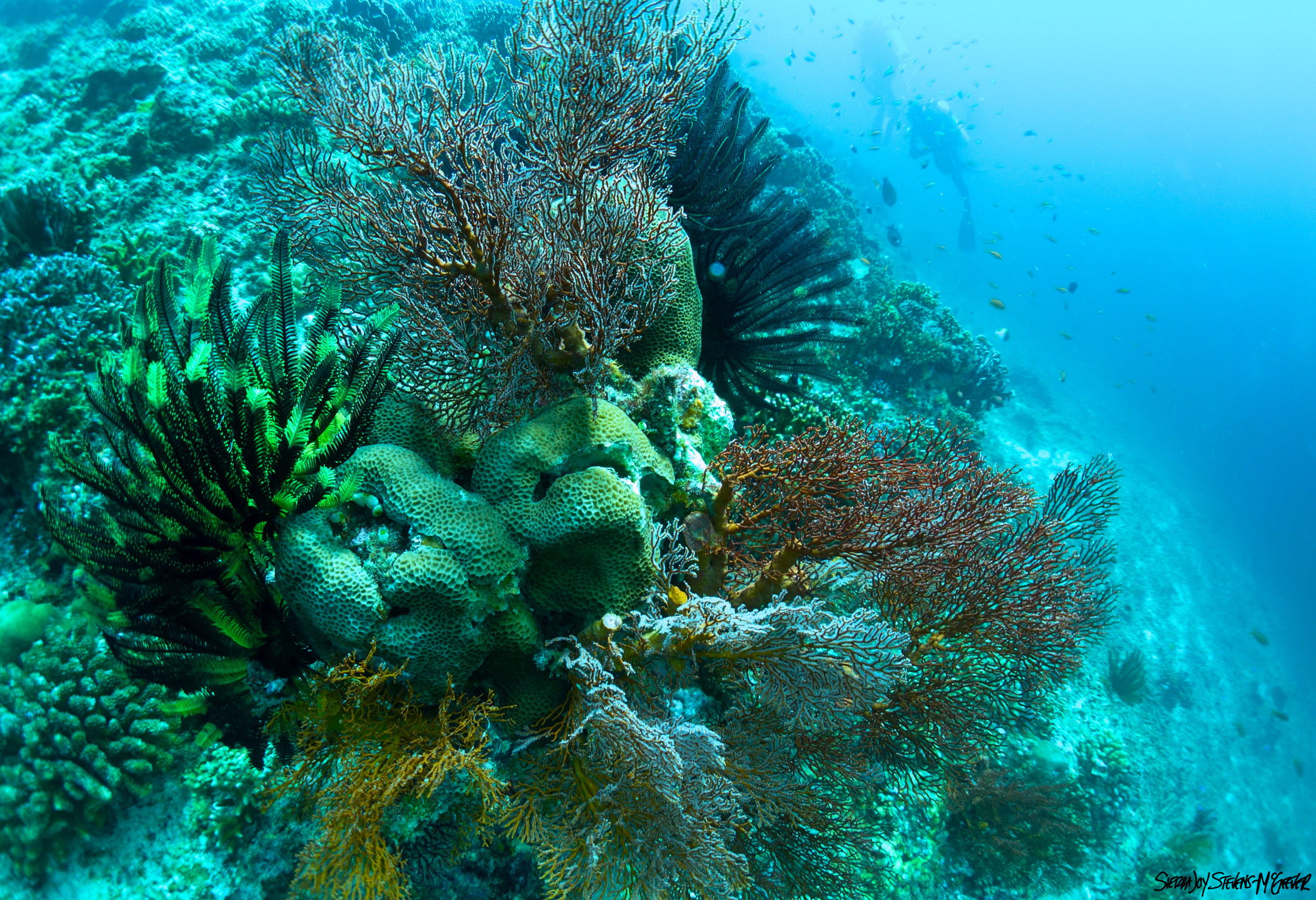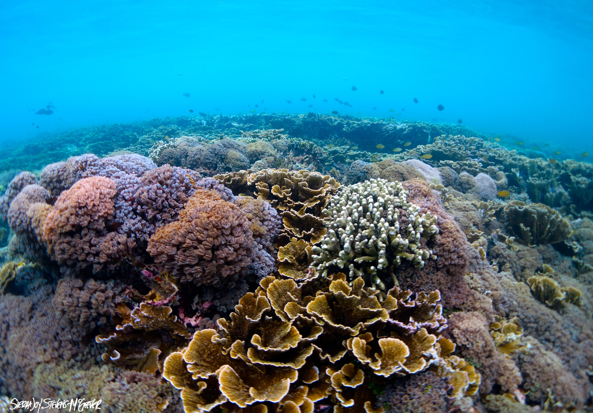 DSC02405Dynamite fishing has been a problem in the Gili Islands and the evidence underwater is overwhelming. Huge sections of the reef turned to vast graveyards of shattered corals, virtually absent of life. Pocketed amongst these battle zones are rare oasis of corals that were missed by the bombing. Life around the corals is vibrant and beautiful. Where the reef has not been blasted away, it is spectacular. Branching hard corals offer hiding places to florescent fish and endless soft corals lie down in the sweeping current. The fish life screams indo pacific, and I am at awe at how much more colorful the fish appear here than in the Caribbean and Pacific. Some sites are epic patchworks layering coral platforms unlike any reef I have seen before. Its an underwater wonderland.