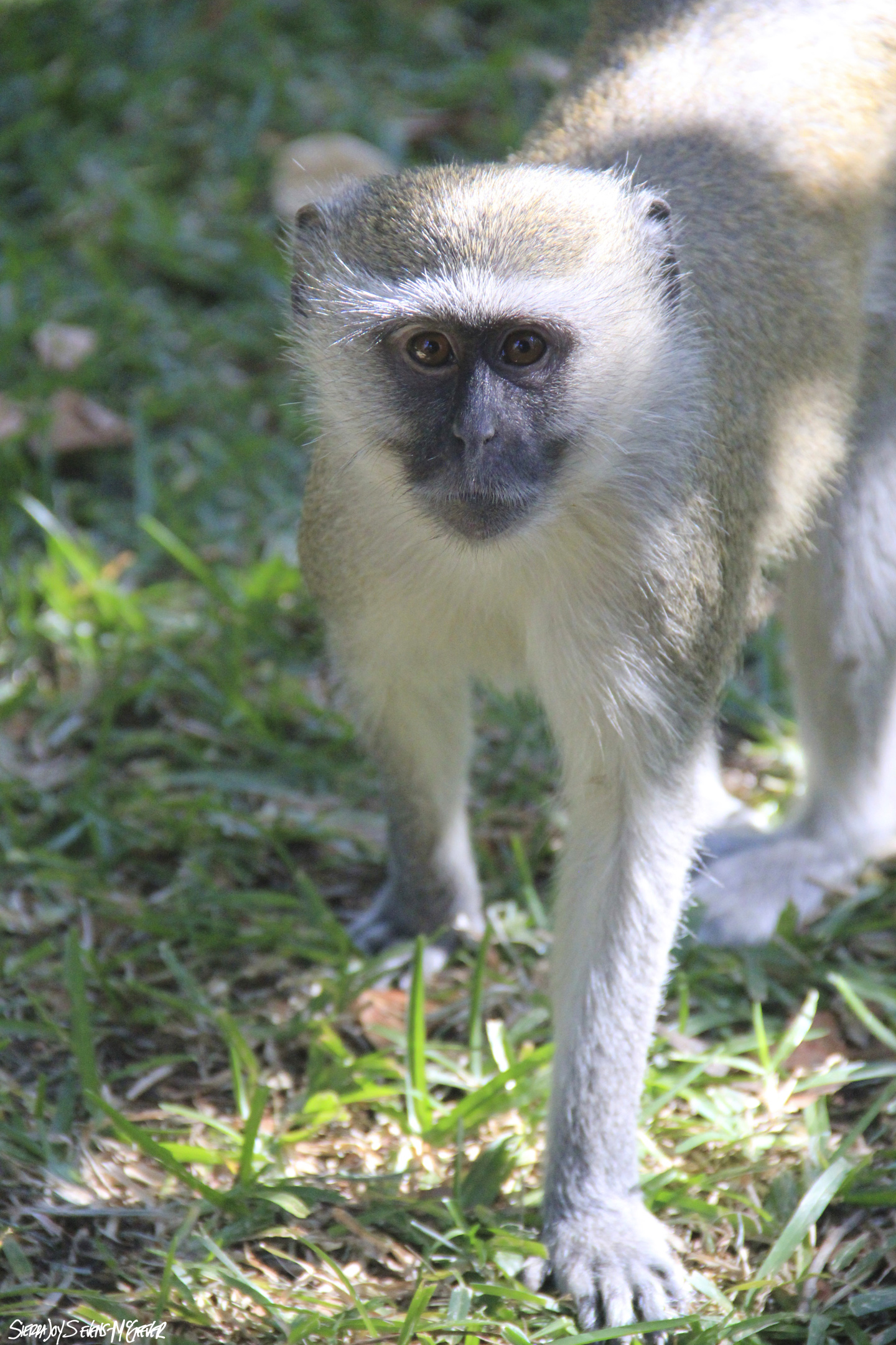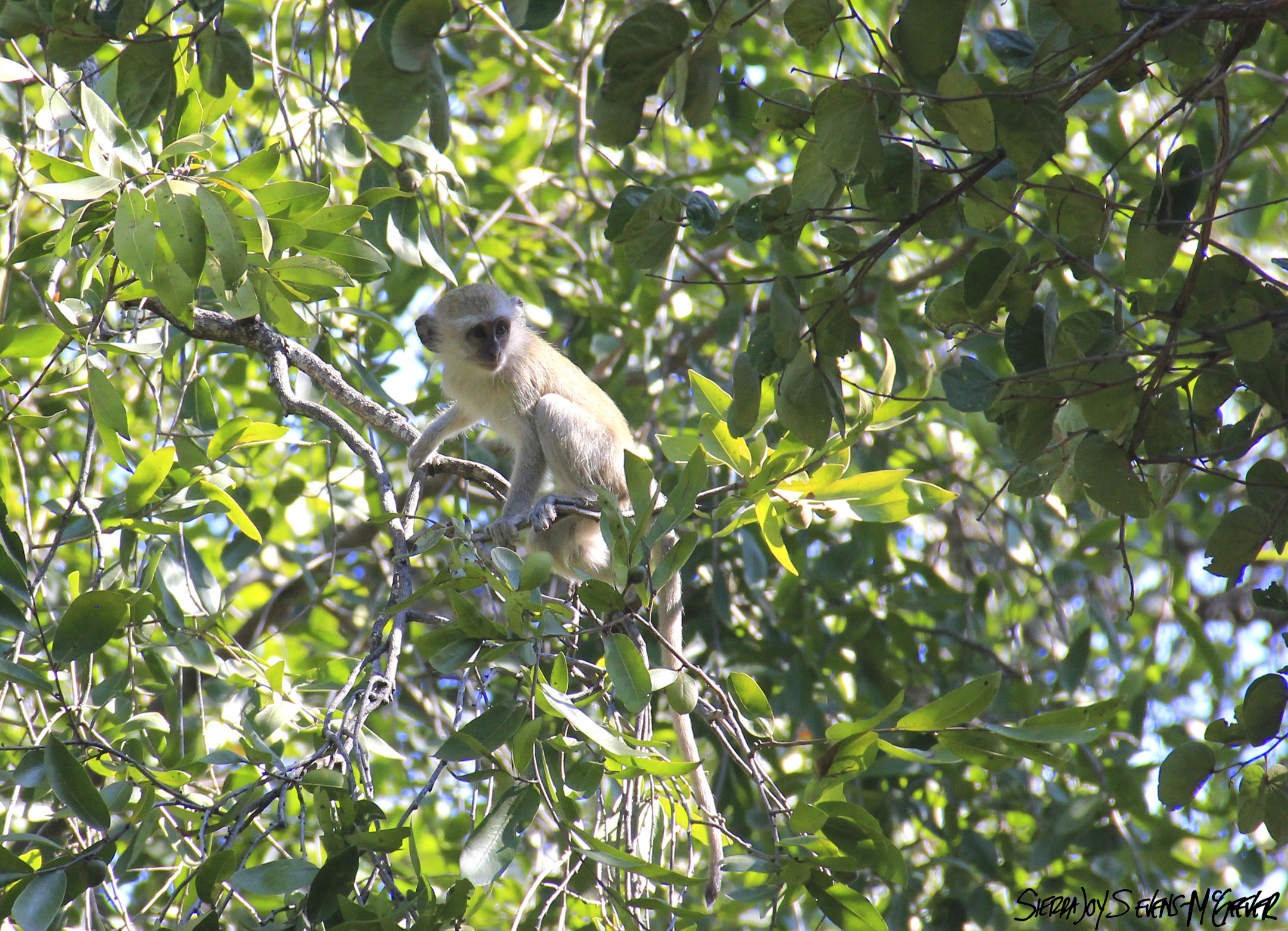 We checked in. The lady at the font desk walked us quietly to our room. The hotel grounds were graced by a continuous canopy of broad-leaf trees, creating a pleasant microclimate in their shade. We passed white Tudor buildings with expansive windows. They looked divine. But the hotel lady walked past the white rooms into a clearing filled with brown tents, made of heavy canvas. She pointed at one and turned on her heel, leaving us astounded and incredulous. The mildewing tent stood surrounded by a family of vervet monkeys. They moved nimbly between the ground and the trees, watching us with round eyes. The young ones played, hopping after each other in sidelong bursts. A mamma sat overlooking them, calmly seated on her hunches, her full breasts hanging down her chest, long finger-like nipples pointed towards each other. Outside our tent door a young male scratched his vivid blue testicles. There was a lock on the tent zipper to deter honest thieves. The hotel staff failed to give us a key. Dave went back for it, allowing me ample time to watch the monkeys eat, play, fight, have sex and take interest in the cliff bars I’ve dragged along from California.
