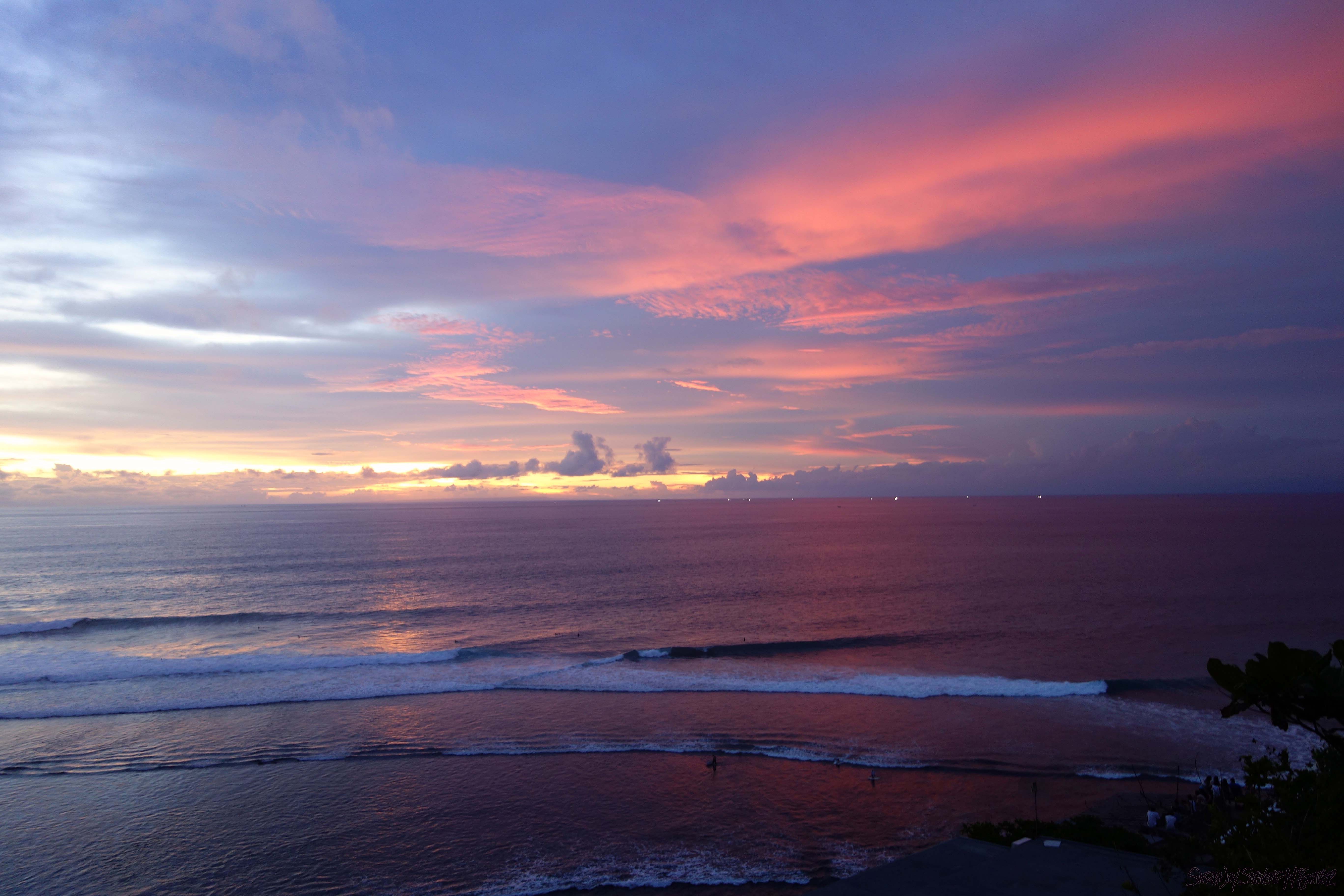 We had dinner at our new favorite restaurant, Single Fin. Fins is at the edge of the top of the cliff. From the balcony you can watch the waves from the far point and see Ulus wrap around the point below. We dinned, drank unbelievable fresh juices and watched the sun set on the day, leaving the clouds first yellow then pink.