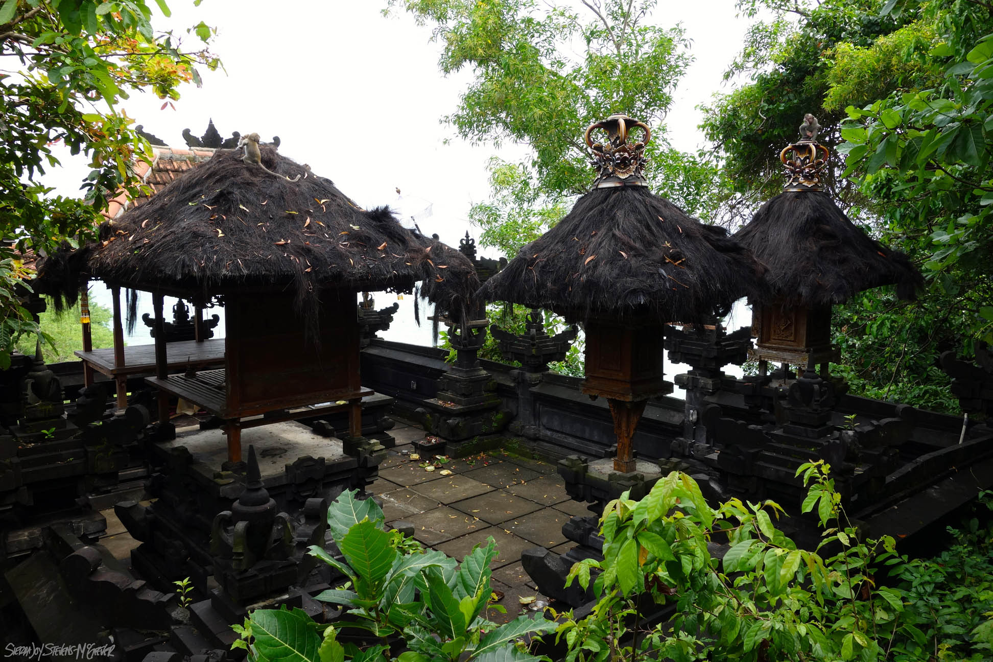 We hiked up the stairs. The path took us through the town of Uluwatu—shops of collaged materials are tucked on top of one another along the cliff face. Tourist souvenirs, surfboard rentals, cafés, laundry, mini markets and a place advertising showers and a toilet. Narrow footpaths make their way between the shops and up the cliff.