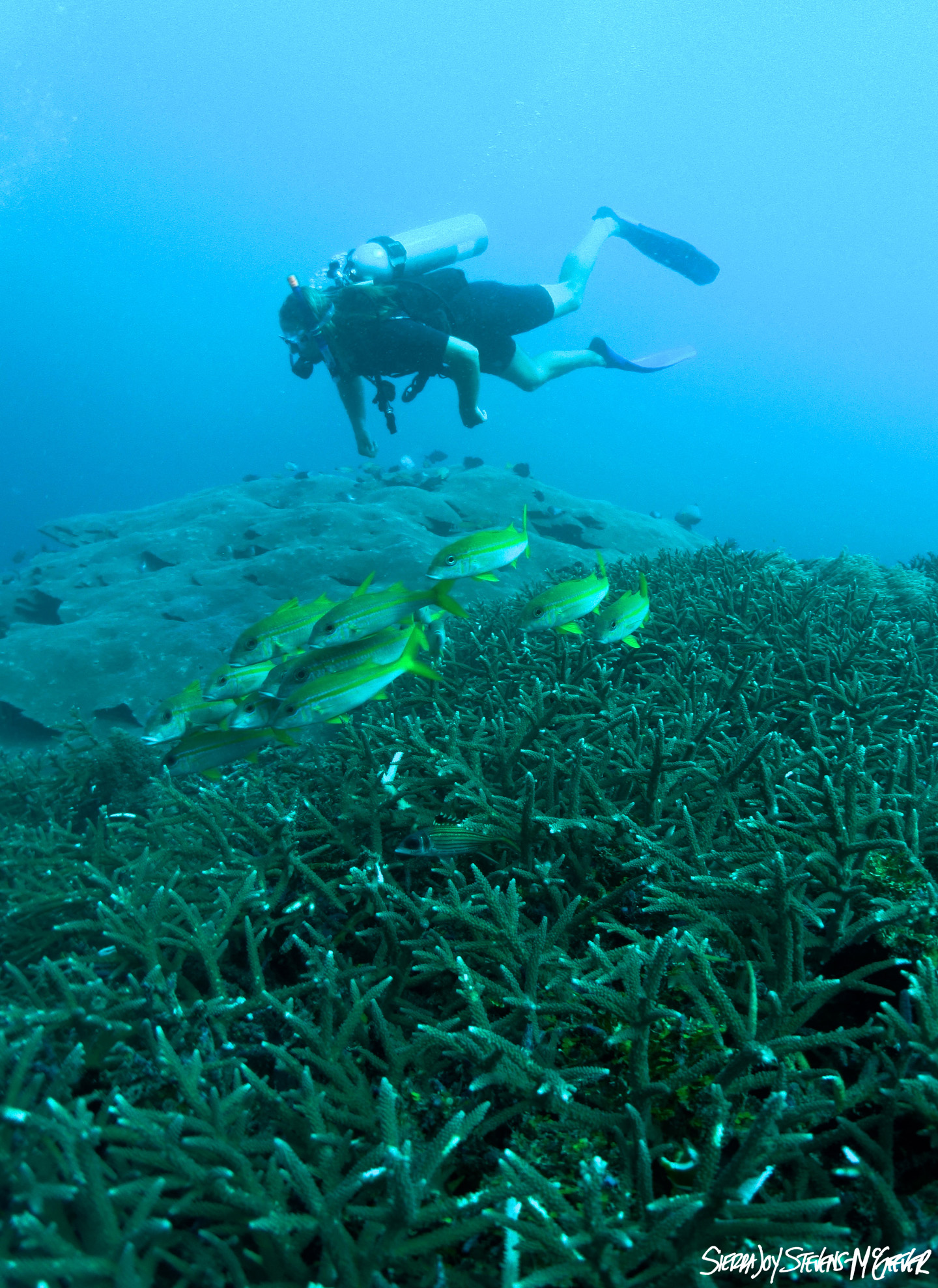 Fifteen minutes into the open ocean from Oahu’s north shore the great Pacific rolled beneath a gray sky. The warm, moist air was smooth and smelled of salt and diesel fumes from the boat’s rumbling motor. The motor puttered to a hush as Nick secured the bowline to the mooring and the sound of light wind returned to our ears. Around and below us the ocean stretched forth, rich and solid. Within her, gray shapes passed below.